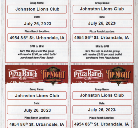 Turn in a Pizza Ranch Tip Night coupon and the Johnston Lions Club will receive $2 per adult buffet to aid homeless veterans. Your donations this evening will go towards the Central Iowa Shelter for Veterans. Homeless vets are accommodated at this location with 19 rooms where they can stay from one night up to […]