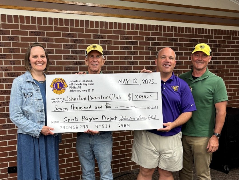 Members of the Johnston Lions Club presented a check for $7.000.00 to Mike Koenigs, President of the Johnston Booster Club, at the club’s July monthly dinner meeting. This money is from proceeds of advertising sold for the Johnston School sports programs, and supports many Johnston school activities. The Lions SERVE our Community. Pictured: Jill Rutz, […]